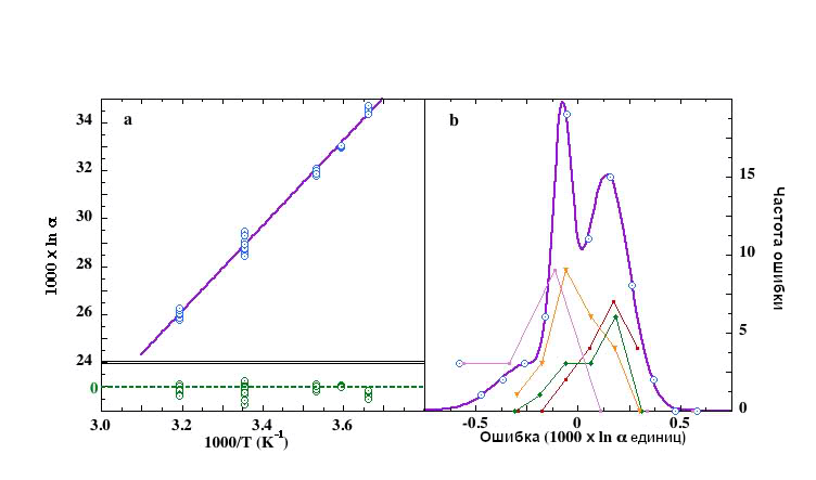 Я провел аналогичный анализ разброса экспериментальных точек в нескольких исследованиях, использованных для калибровки температурной шкалы T:O-18. Вот краткое изложение результатов: