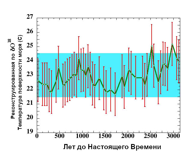 Любой исследователь, использующий уравнение dO-18:T из Ким и др., 2007 для реконструкции палеотемпературы, должен внести в свой результат неопределённость в размере по крайней мере (+/-)0,6 C, а лучше (+/-)1 C.