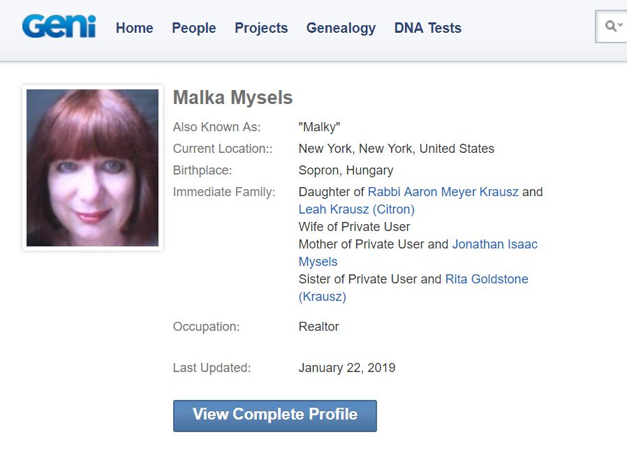 Малка Мыселс на Geni.com: