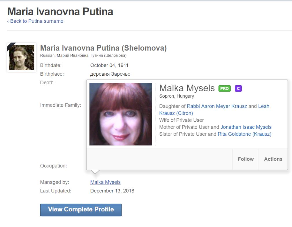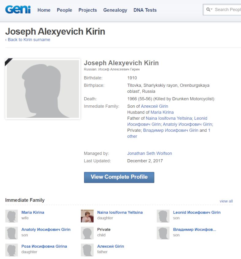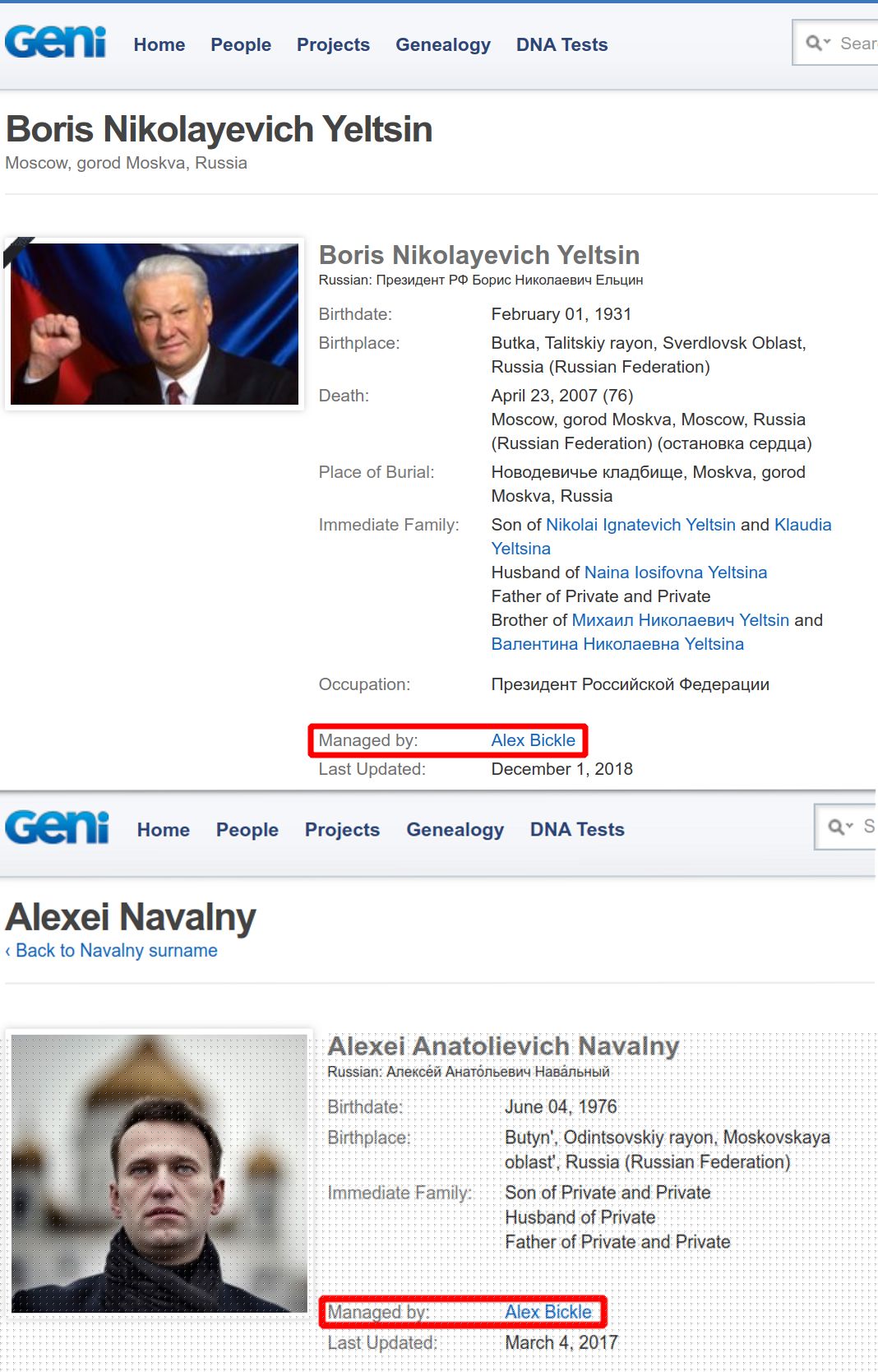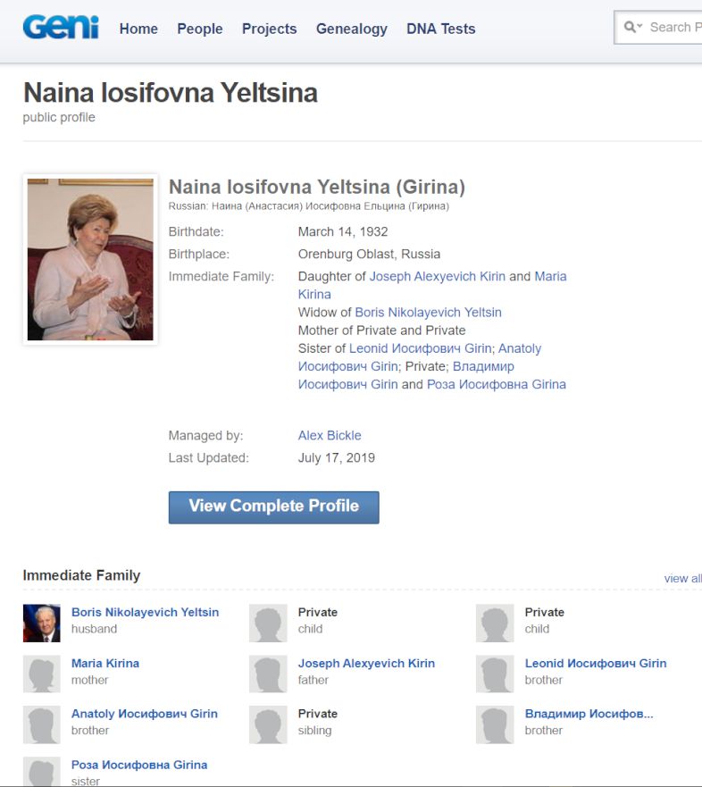 Интересный факт: есть такой всемирно известный сайт для отслеживания родословных - Geni.com У родословных / профилей людей есть кураторы. Родословная самого Путина курируется (Managed by) бывшим агентом КГБ Леонидом Семёновым - Geni.com.