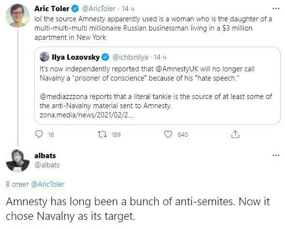 Amnesty has long been a bunch of anti-semites. Now it chose Navalny as its target - Амнести (Интернешнл) давно была группкой антисемитов. Теперь она выбрала Навального своей целью.