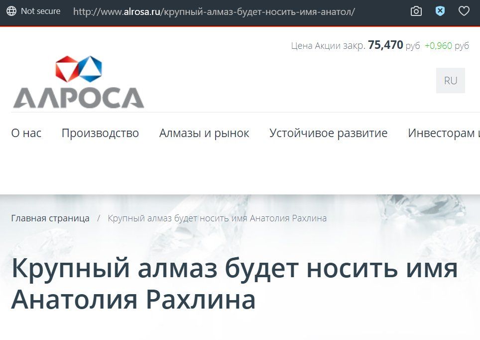 В честь Рахлина “Алроса” даже назвала добытый алмаз: