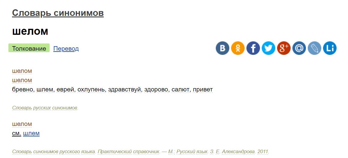Таким образом “шелом”, “шалом” или “шолом” - это всё варианты одного жидовского слова.
