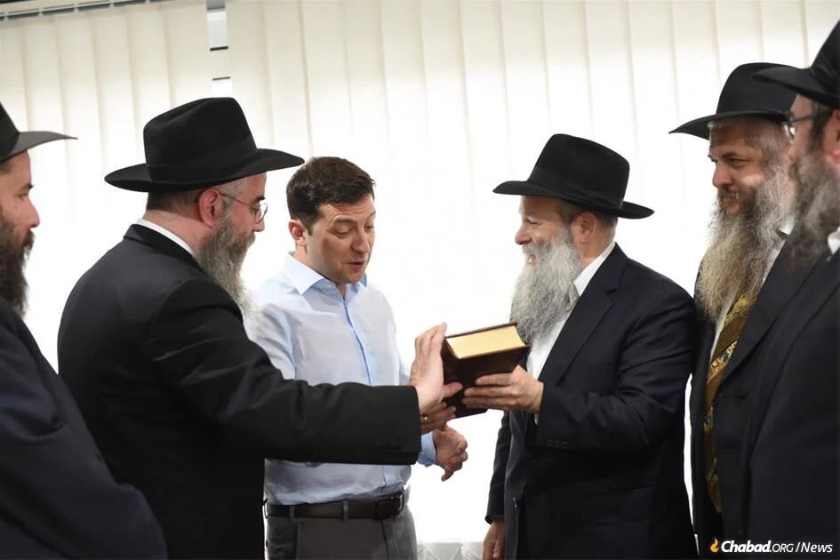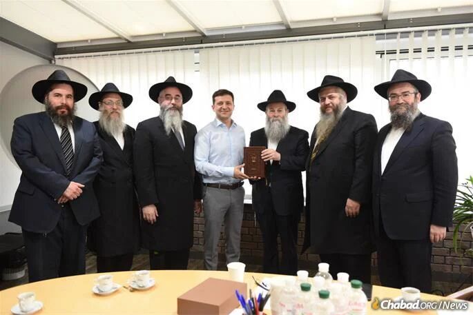 Комик, ставший политиком, Владимир Зеленский приветствует украинских раввинов Хабад