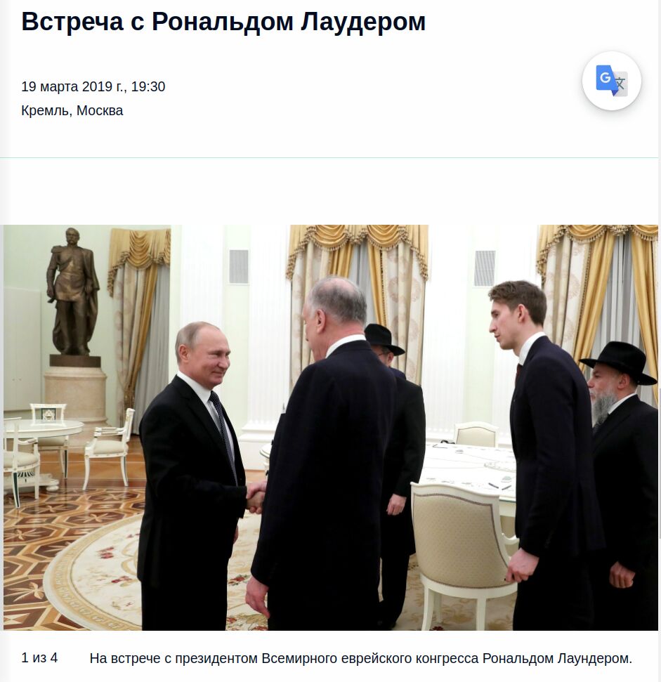 Жид Путин-Шаломов только не подпрыгивает от встречи с президентом Всемирного Жидовского Конгресса Рональдом Лаудером