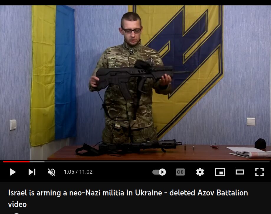 Онлайн-пропаганда батальона "Азов" показывает лицензированные Израилем винтовки Tavor в руках фашистской группировки, а израильские правозащитники протестуют против продажи оружия Украине на том основании, что оружие может попасть к антисемитским вооруженным формированиям.