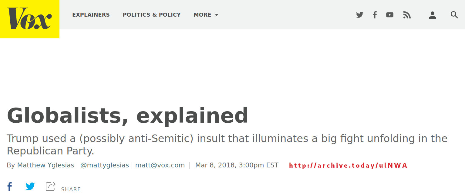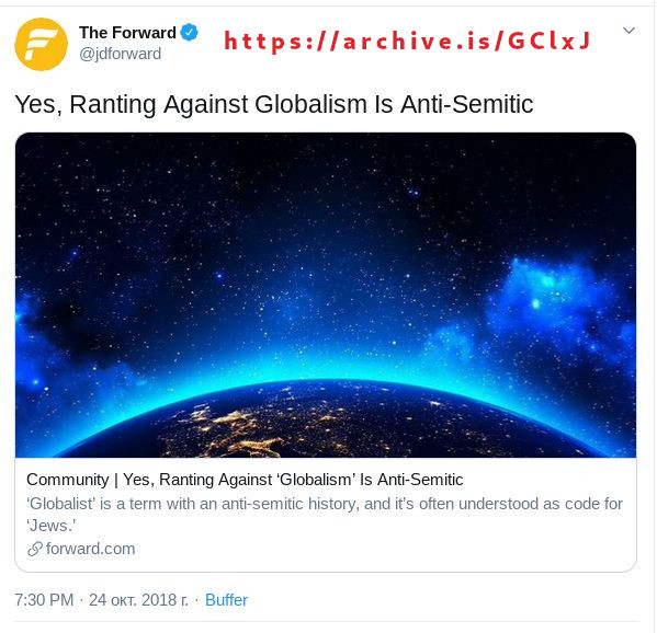 'Глобалист' - это термин с антисемитской историей, и его часто понимают как код для обозначения "жидов", поэтому использование этого слова активизирует и травмирует множество жидов.