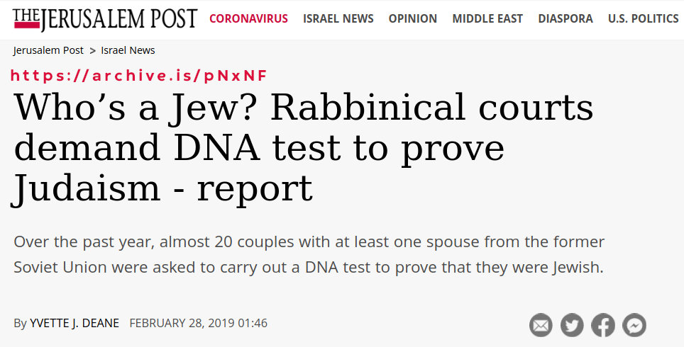 СкриншотКто является жидом? Раввинские суды требуют прохождения тестна на ДНК для доказательства жидовства