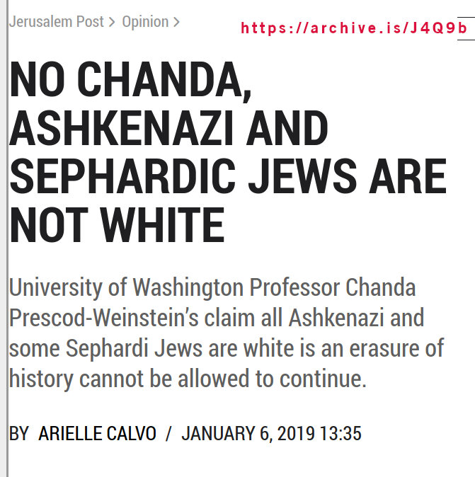 Заявление профессора Вашингтонского Университета Чанды Прескот-Вайнштайн о том, что все жиды ашкеназы и часть жидов сефардов Белые, - это стирание истории и ему нельзя позволить продолжить существовать.