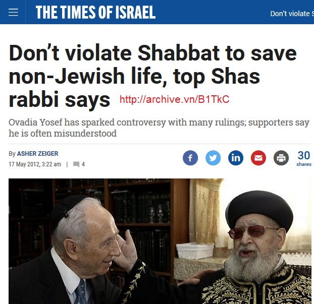 СкриншотНе нарушайте Шаббат (Субботы) ради спасения жизни нежида, говорит главный раввин религиозной политической партии Шас
