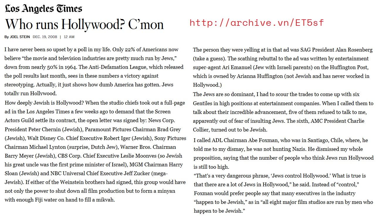 Согласно Жидовской Энциклопедии, 1944 г.: "Он брал на работу в свой бизнес только жидов, и куда бы он их не посылал, он строил там для них синагоги и жидовские школы. Он импортировал целые семьи знакомых жидов... и давал им работу."