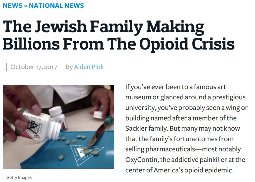 Жидовская семья сколачивает миллиарды долларов на опиоидном кризисе