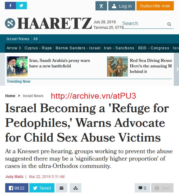 СкриншотПедофилы жидовской диаспоры (со всего мира) всё чаще используют Израиль в качестве "убежища", заявляют активисты